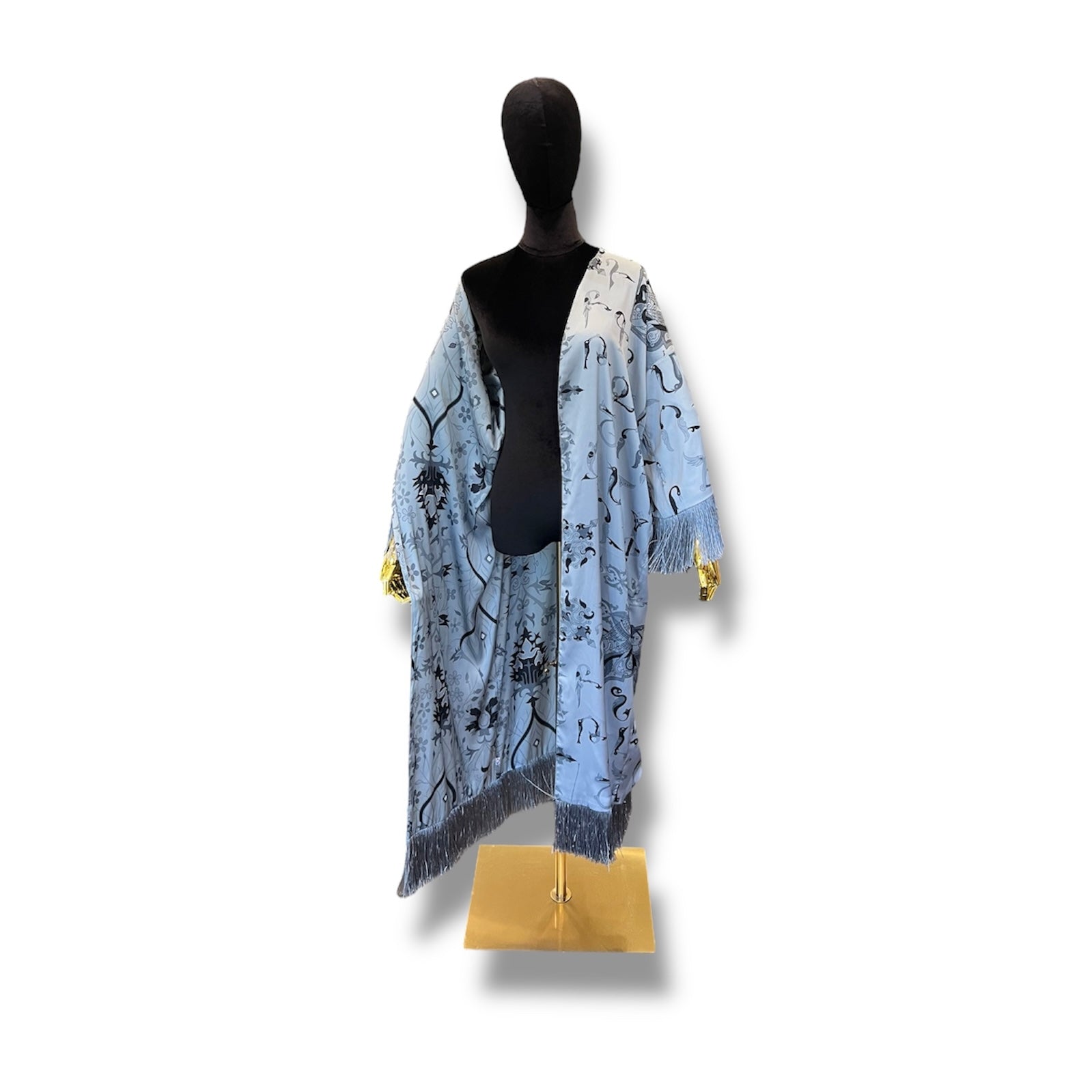 Light Grey with Grey Fringe Armenian Alphabet Silk Robe